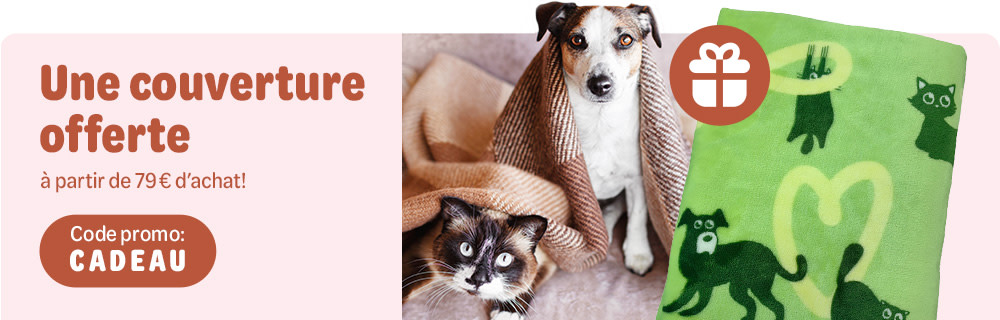 Du 24 février au 1er mars 2026, profitez d’une offre spéciale zooplus : pour toute commande à partir de 79 €, recevez une superbe couverture en flanelle. Ultra‑douce et bien chaude, elle apporte un confort idéal pour affronter l’hiver et créer un coin cosy pour vous et votre compagnon. Un cadeau pratique et chaleureux qui fait plaisir à coup sûr.