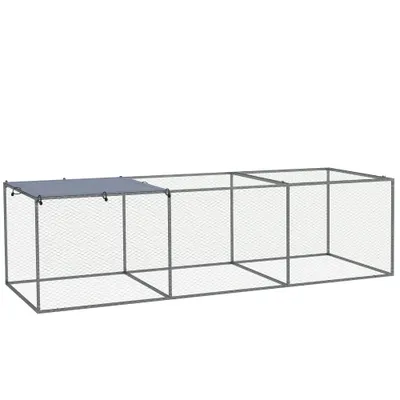 Cage parc enclos poulailler dim. 2,96L x 1l x 0,8H m - espace couvert - ouverture toit verrouillable - acier gris vertPlus d'informations...