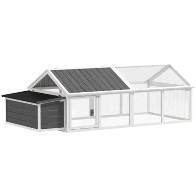 PawHut - Poulailler 2 Zones Toit Ouvrant et Porte - H.76cm - Gris Blanc