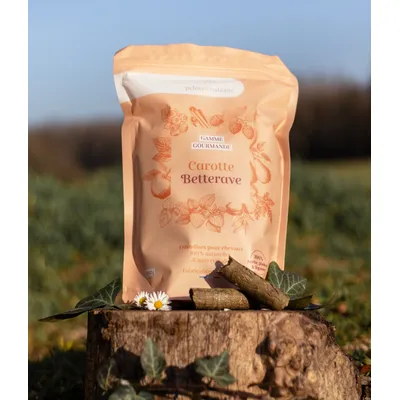 Découvrez notre gamme « Gourmande » avec ces friandises à base de carotte et de betterave. Leur parfum appétant ravira les papilles de votre cheval !