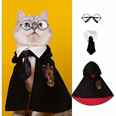 🌟Ensemble 3 pièces de haute qualité de la Cat Academy🎁 Cet ensemble exceptionnel inclut un nœud papillon élégant, une cape double - couche avec un tissu en maille respirante à l'intérieur et une paire de lunettes. C'est l'outil idéal pour conférer un costume magique à vos chiens, chats et chiots de petite et moyenne taille. 🐾 Imaginez à quel point ils seront adorables dans ces tenues!