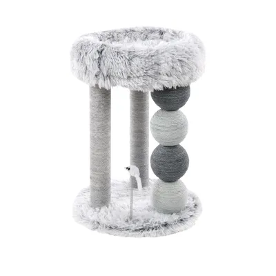 Les poteaux à griffer en corde de jute, de diamètres variés, permettent à votre chat d'entretenir naturellement ses griffes tout en stimulant son activité physique. Un élément suspendu vient compléter l'ensemble pour éveiller l'instinct de jeu et encourager l'activité au quotidien.