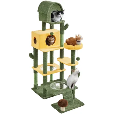 2. Thème oasis charmant : Cet arbre à chat design comporte des poteaux effet cactus, un perchoir effet fleur et une « champignon » mignonne. Ses couleurs vivantes en font un chic mobilier pour illuminer votre pièce