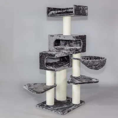 Une citadelle est une fortification qui domine une ville fortifiée et qui peut être défendue de manière indépendante. Et depuis ce griffoir, jusqu'à 6 chats peuvent défendre la forteresse en même temps ! Une citadelle peut avoir deux fonctions différentes : une forteresse ou un château pour contrôler les habitants de la ville. Et c'est exactement ce que le Birman Citadel peut faire ! Vos chats pourront s'étirer, se cacher et se démener jusqu'au bout. Le (Corner) Arbre à chat Birman Citadel (Gris foncé) de RHR Pets est un griffoir qui peut accueillir jusqu'à 5 chats en même temps. Grâce à sa hauteur d'environ 1,8 m, il s'élève comme une tour au-dessus des autres et, de là, vos chats peuvent merveilleusement garder un œil sur tout. Avec ses poteaux en sisal de 15 cm d'épaisseur et un seul poteau en sisal de 20 cm d'épaisseur, il offre également une grande stabilité et un grand plaisir de grattage. Le grand siège Lounge de 60x43 cm avec un bord surélevé de 14 cm, les deux tonneaux de jeu de 60x35 cm et le hamac de luxe s'intègrent parfaitement au design. Les coussins amovibles et lavables, d'une épaisseur allant jusqu'à 4-5 cm, complètent le grand salon et la maison pour chats. Grâce à la hauteur de près de 2 mètres (1,8 m), vos chats peuvent bien sûr garder un œil sur leur domaine. Il y a également deux grandes maisons de jeu mesurant 60x35x30cm avec 2 grandes entrées de 20cm de diamètre entièrement recouvertes de sisal de haute qualité. Ces maisons sont livrées avec deux coussins très épais pour que vos chats puissent se réfugier ou se cacher dans l'un des étages. Le hamac de 45 cm peut facilement supporter un poids de 20 kg et les lits de 55 cm sont également parfaits pour que votre chat puisse jouer, se reposer ou dormir. Ces plates-formes sont toutes recouvertes d'une peluche de haute qualité de 600 g/m2. En plus de servir de lieu de repos, elles servent également de marchepied pour monter à mi-hauteur du griffoir. Avec le Birman Citadel, vous gardez votre chat en forme et en bonne santé et vous lui offrez un endroit merveilleux pour se détendre et jouer ! En effet, autour du griffoir, votre chat dispose de beaucoup d'espace pour se défouler. La composition des poteaux en sisal de 15 et 20 centimètres d'épaisseur permet même aux plus grands chats de s'étirer complètement, ce qui est ergonomiquement important pour les articulations de votre chat.Avis