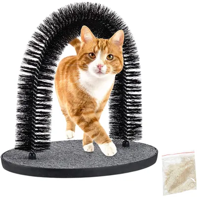 1 2 en 1 : arche à chat pour le toilettage et le massage - Avec brosse pour toutes les longueurs de cheveux - Élimine les bouloches