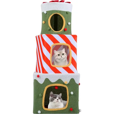 Giantex Arbre à Chat de Noel,Maison Forme Boîte Cadeau à