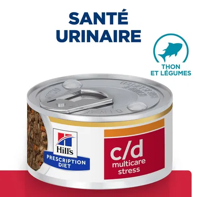 Caractéristiques de la nourriture humide Hill’s Prescription Diet c/d Multicare Stress Mijoté au thon et aux légumes :