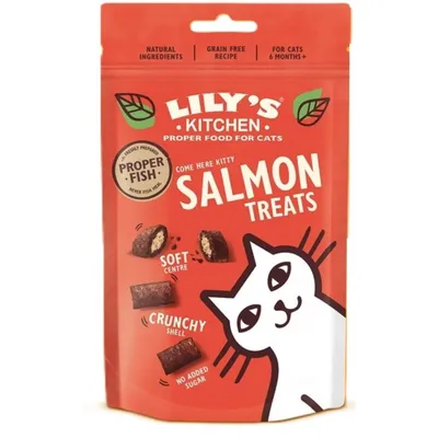 Friandises au saumon 60g pour chat Lily's KitchenÉlaborée à partir de viande et de poisson sélectionnés avec soinIngrédients naturelsSans sucres ajoutésRecette sans céréalesCroquante à l'extérieur, mo