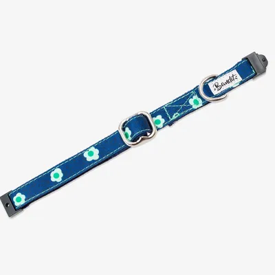 🌼Collier pour chat en tissu et nylon. Imprimé denim bleu brut à fleurs. Boucle anti-étranglement.