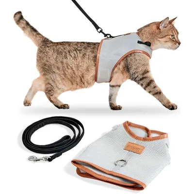 ✅ TRAITEMENT & MATÉRIAU DE HAUTE QUALITÉ – Fabriqué en maille de première qualité dans une couleur grise élégante avec des finitions en simili-cuir, ce harnais et laisse pour chat combine robustesse et style. Les accessoires pour chat, comme ce harnais chat adulte, offrent une durabilité et une esthétique supérieure, convenant également pour un harnet pour chaton ou un harnet pour chat.