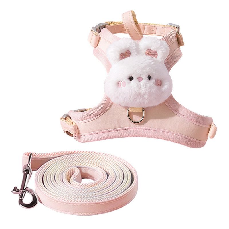 Harnais et laisse réglable anti-fuite pour chat, motif lapin rose, 1,2 m et 1,6 m.Plus d'informations...