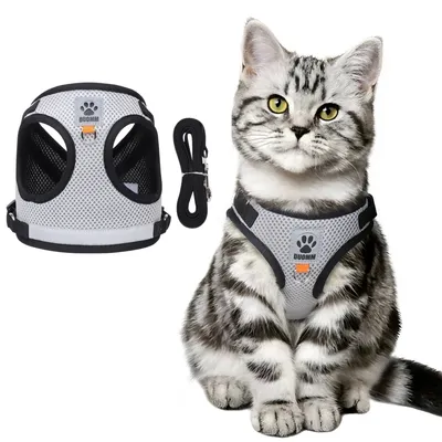 Harnais réfléchissant pour chat, ajustable, ultra - léger, antidérapant, durable et à conception scientifique.