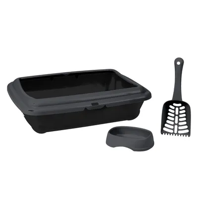 - Comprend 1 bac à litière, 1 pelle et 1 gamelle