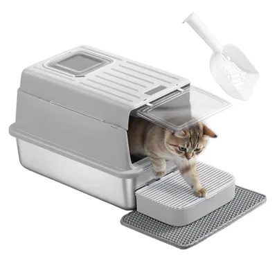 Caractéristiques : Couleur : Gris tourterelle Matériaux : Acier inoxydable, PP (polypropylène) Dimensions : 60 x 40 x 38 cm (L x l x H) Poids : 3,5 kg Capacité de charge statique maximale du dessus : 15 kg Livraison : 1 x Bac à litière pour chat 1 x Pelle à litière 1 x Boîte avec design en grille 1 x Tapis pour litière 1 x Mode d’emploiAvantages du produit