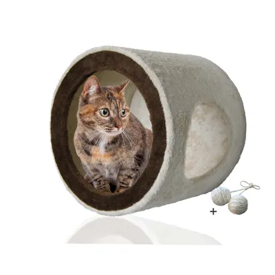 Votre chat pourra se blottir confortablement dans cette grotte recouverte de peluche toute douce. Avec la possibilité de le fixer au mur, vous pouvez créer un refuge attrayant pour votre proche. La grotte murale est le complément idéal aux meubles pour chats existants ou peut créer un superbe parc de murs d'escalade en utilisant plusieurs meubles de murs d'escalade. La livraison comprend le matériel de montage. Dimensions totales (LxlxH) env. : 28x34x34 cm Composé de : 1 grotte ronde env. Ø 34 x P28 cm, ouverture frontale env. Ø 25 cm, ouverture latérale env. de 2 balles de jeu. La combinaison imaginative d'une corde en sisal robuste et d'une boule creuse remplie de grains apporte de nombreuses heures de bonheur dans la vie d'un chat. Cela soutient non seulement le soin quotidien des griffes, mais stimule également les sens, favorise la motricité et assure un mouvement sain. La balle a un diamètre d'environ 4,5 cm - la taille idéale pour jouer et explorer !Avantages du produit