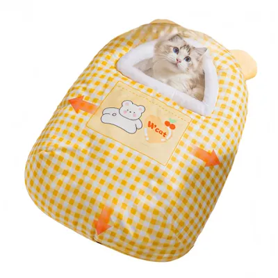 Sac de sommeil pour chat d'hiver, design semi - fermé, matériaux chauds et un grand espace pour dormir confortablement.Plus d'informations...