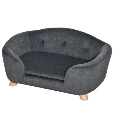 PawHut - Lit canapé chien coussin amovible pieds bois massif H.30 cm - gris