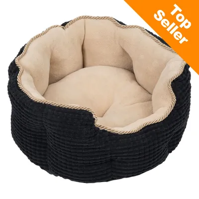 Laissez votre petit compagnon somnoler confortablement dans le panier Cozy Kingdom et rêver de son royaume. Il pourra se blottir douillettement contre le rebord élevé de ce panier très doux et tout chaud, orné d'une cordelette, qui lui procurera sécurité et bien-être pour des siestes pleines de sérénité. Le coloris noir de l'extérieur de ce petit panier ainsi que la cordelette dorée contrastent subtilement avec l'intérieur beige clair en polaire toute chaude. Très pratique, son coussin amovible bicolore peut être lavé séparément. Cela vous permettra non seulement de changer l'aspect du panier selon vos envies mais vous épargnera également la corvée de nettoyer ce dernier intégralement.Coloris : noir/beige.