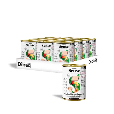 Dibaq Sense Segovia Suckling Pig Tin est une délicieuse boîte hypoallergénique sans céréales, composée de 76 % de viande fraîche de cochon de lait, de fruits et légumes frais (carotte et pomme), de protecteurs d'articulations et d'antioxydants naturels. Dibaq Sense est une gamme hypoallergénique exclusive composée d'ingrédients 100% naturels. Recettes à base de viandes fraîches (saumon, hareng, poulet, canard, dinde...), de fruits et légumes frais (pommes de terre, patates douces, poivrons, myrtilles, pommes, mangues...), de protecteurs articulaires (chondroïtine et glucosamine), de plantes prébiotiques et d'antioxydants naturels.