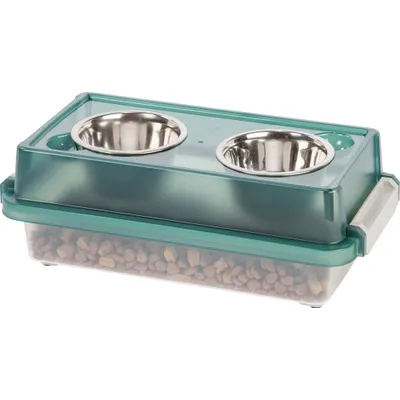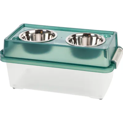 Gamelle Surélevée avec boite à croquette hermétique, 2 bols amovibles