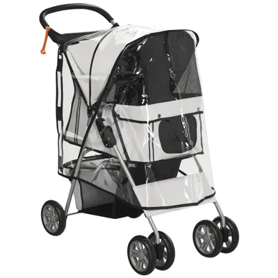 PawHut - Poussette pliable animaux porte-gobelet panier freins - gris