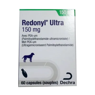 REDONYL ULTRA 150 - DECHRA est un complément alimentaire diététique pour chiens et chats souffrant de dermatose et de dépilation. La teneur en PEA (palmitoyléthanolamide) aide à maintenir la foncti