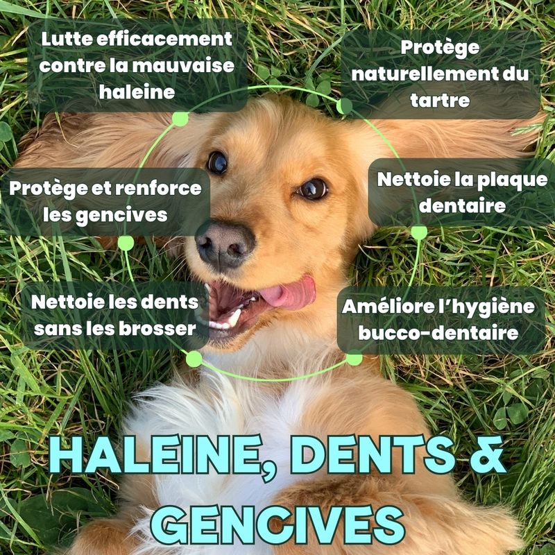 • 🦷 UTILISATION SIMPLE, ZÉRO CONTRAINTE : ajoutez simplement une dose quotidienne dans la gamelle de votre chien. Plus besoin de brossage ! Dosette incluse pour un dosage précis.