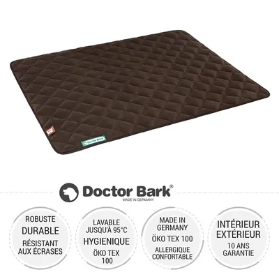 Couverture matelassée pour chiens Les couvertures matelassées Doctor Bark allient haute qualité de fabrication et design intemporel, conçues avec des matériaux robustes. Grâce à son rembourrage thermo-résistant doux et résistant, cette couverture offre un grand confort de couchage et protège contre le froid du sol grâce au rembourrage innovant Back-to-Shape. Idéale comme lit confortable, protection de canapé ou couverture d'extérieur. Fabriquée en Allemagne, la couverture se distingue par sa finition de haute qualité et son design intemporel. Elle est douce, rembourrée, lavable jusqu'à 95°C et séchable en machine, ce qui la rend facile à entretenir et hygiénique. Le rembourrage thermique robuste et durable est adapté aux personnes allergiques. Avec une garantie fabricant de 10 ans, vous investissez dans la qualité et le confort pour votre compagnon à quatre pattes.Avantages du produit
