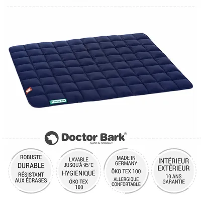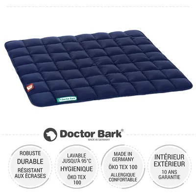 Couverture matelassée pour chiens Les couvertures matelassées Doctor Bark allient haute qualité de fabrication et design intemporel, conçues avec des matériaux robustes. Grâce à son rembourrage thermo-résistant doux et résistant, cette couverture offre un grand confort de couchage et protège contre le froid du sol grâce au rembourrage innovant Back-to-Shape. Idéale comme lit confortable, protection de canapé ou couverture d'extérieur. Fabriquée en Allemagne, la couverture se distingue par sa finition de haute qualité et son design intemporel. Elle est douce, rembourrée, lavable jusqu'à 95°C et séchable en machine, ce qui la rend facile à entretenir et hygiénique. Le rembourrage thermique robuste et durable est adapté aux personnes allergiques. Avec une garantie fabricant de 10 ans, vous investissez dans la qualité et le confort pour votre compagnon à quatre pattes.Avantages du produit
