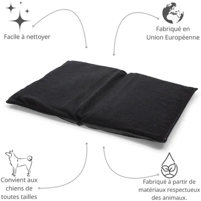 Sac/Matelas 2-en-1 pour Chats et Chiens – style, confort et praticité signés Woodek Design Offrez à votre animal un espace de repos élégant, confortable et facilement transportable avec le Sac/Matelas 2-en-1 par Woodek Design. Idéal pour les voyages, les sorties ou les déplacements du quotidien, il combine design pratique, matériaux de qualité et engagement écoresponsable. ✔ Design convertible : sac & matelas spacieux Avec ses dimensions de 95 x 75 x 7 cm, ce sac pratique se déplie entièrement pour offrir à votre animal un matelas douillet et familier, parfait en voyage ou à la maison. Il s’ouvre à plat pour maximiser l’espace de repos. ✔ Poche à friandises intégrée Une poche pratique permet de garder les friandises ou petits accessoires à portée de main. Idéale pour apaiser ou récompenser votre animal durant les déplacements. ✔ Matériaux durables et lavables Le tissu noir certifié Oeko-Tex® est résistant et élégant. La housse amovible lavable à 30°C garantit un espace propre, hygiénique et facile à entretenir. ✔ Confort et longévité Le rembourrage offre une surface douce et protectrice, parfaite pour les animaux qui aiment se blottir. La couche protectrice intérieure assure durabilité et chaleur. ✔ Artisanat européen de qualité Ce sac/matelas est fabriqué à la main dans l’UE, reflet du savoir-faire Woodek Design, alliant robustesse, esthétique et respect de l’environnement grâce à l’usage de matériaux recyclés. Le Sac/Matelas Woodek Design est l’allié idéal pour offrir à votre compagnon un confort maximal, à la maison comme en déplacement.Avantages du produit