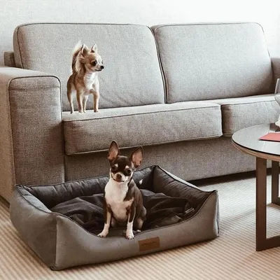 Bagane Lit pour chien en tissu bicolore gris Jaba