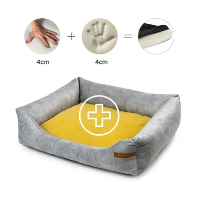 Rexproduct Otto lit pour chien confortable 2 en 1, gris avec jaune