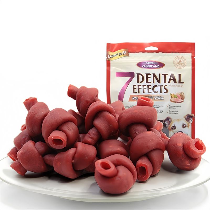 Offrez à votre chien ce délicieux os à gratter de 160 grammes, conçu pour répondre à ses besoins de mordillage et de santé dentaire. Le design noué de cet os lui permet de pénétrer facilement dans les interstices dentaires de votre chien. Lorsque votre chien le mordille, il nettoie efficacement les dents, élimine le tartre et les bactéries, contribuant ainsi à maintenir une haleine fraîche et des dents saines. Le produit est conçu avec une texture moelleuse et un équilibre parfait entre la dureté et la douceur. Il ne blesse pas le tube digestif de votre chien et est facilement assimilé, garantissant une bonne santé intestinale. Doté d'une grande ténacité, cet os peut résister aux mordilles intenses de votre chien. Il est idéal pour les chiens énergiques et pour les séances d'entraînement, pouvant être utilisé comme récompense pour encourager les bons comportements. Nous avons sélectionné avec soin des ingrédients naturels et nutritifs. Le bœuf frais apporte une quantité abondante de protéines, essentielles pour la croissance et la santé musculaire de votre chien. Le saumon est riche en acides gras oméga - 5, qui contribuent à la santé de la peau et du poil, ainsi qu'au développement cérébral. L'avocat fournit des glycérides, des protéines et des vitamines, renforçant le système immunitaire de votre chien.Avantages du produit