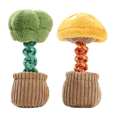 Notre collection de jouets pour chiens en forme de légumes, tels que le champignon et le brocoli, est conçue pour répondre aux besoins de divertissement et de santé de vos chiens. Lorsque votre chien les mord, ils émettent un son, ce qui active son instinct de chasse. Les jouets sont faits de corde en coton élastique de haute qualité, ce qui permet au chien de mordre sans se blesser les dents. Les cordes tordues comme des tresses sont idéales pour nettoyer les dents et masser les gencives de votre chien. Ils sont conçus pour être résistants et durables, capables de supporter les griffes et les dents des chiens. Les jouets en forme de pot de fleurs multicolores sont non seulement esthétiques, mais aussi excellents pour aider le chien à se détendre. Lorsque vous n'êtes pas à la maison, ces jouets divertissent votre chien et l'empêchent de mordre les meubles. Le jouet peut émettre un son BB lorsque l'on appuie sur la tête ou la queue, ce qui favorise l'interaction entre l'homme et l'animal. De plus, la corde élastique pour la lutte est solide et permet non seulement de jouer en famille, mais aussi de nettoyer les dents du chien. Les jouets sont conçus selon des normes de qualité élevées et peuvent être utilisés pendant longtemps. Que ce soit la tête ou la queue, votre chien peut les saisir pour une partie de tir - à - la - corde.Avantages du produit