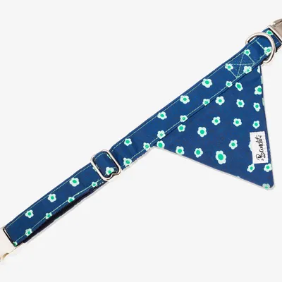 🌼 Bandana pour chien en tissu et nylon. Imprimé denim bleu brut à fleurs.