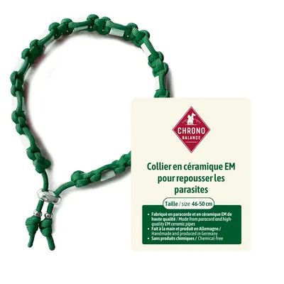 Nos colliers en céramique ChronoBalance EM sont tressés à partir de paracorde et de tuyaux en céramique EM. EM signifie Efficaces Micro-organismes. L'EM est une culture microbienne mixte composée principalement de bactéries lactiques, de levures et de bactéries photosynthétiques. Les tuyaux en céramique sont de petits tubes en céramique cuits à partir d'argile mélangée à de l'EM.