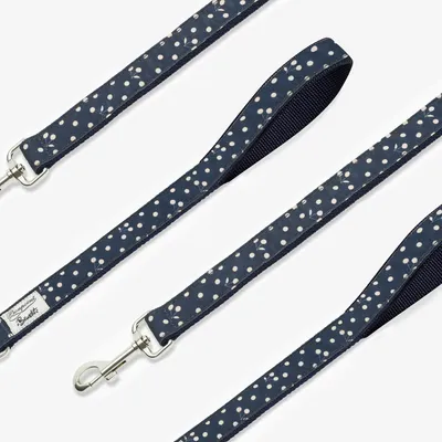 Laisse pour chien, imprimé bleu marine avec des pois et cerises.