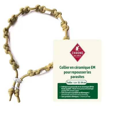 Nos colliers en céramique ChronoBalance EM sont tressés à partir de paracorde et de tuyaux en céramique EM. EM signifie Efficaces Micro-organismes. L'EM est une culture microbienne mixte composée principalement de bactéries lactiques, de levures et de bactéries photosynthétiques. Les tuyaux en céramique sont de petits tubes en céramique cuits à partir d'argile mélangée à de l'EM.
