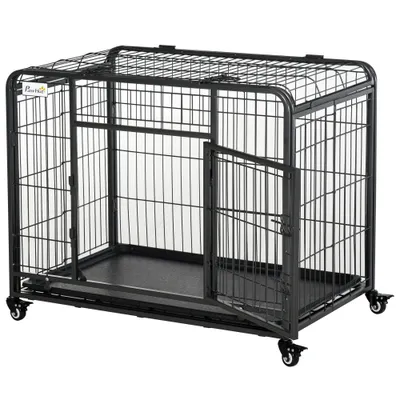 PawHut - Cage Transport Pliable - Roulettes & 2 Portes - H.69cm - Gris Noir