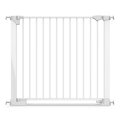 Barrière de sécurité Safetots avec barre de seuil - design contemporain, ouverture large et seuil très bas. Fabriquée en métal durable, disponible en blanc et noir, elle s’intègre facilement à tout intérieur. Cinq tailles standard couvrant 68 cm à 103 cm, extensible jusqu’à 159 cm pour les passages plus larges. Poignée ergonomique pour une ouverture à une main, système de fermeture assistée et verrouillage pouvant empêcher l’ouverture dans les deux sens. Limiteur de porte polyvalent pour un contrôle d’accès flexible. Conception anti-escalade et protection anti-pincement pour une sécurité renforcée des enfants. Installation sans perçage par fixation par pression, se fixe solidement aux murs ou cadres de porte. Conforme à la norme de sécurité EN1930:2011.Avantages du produit