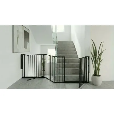 Solution Safetots multi-panneaux avec deux portillons - protection modulable pour escaliers et passages. Parfaite pour les zones où les barrières standard ne conviennent pas (bas d’escaliers ouverts, marches débordantes, configurations en angle), cette installation offre une sécurité fiable sans compromettre l’esthétique intérieure. Conception flexible et modulaire, configurable pour angles, coins, espaces larges ou étroits. Deux portillons réversibles s’ouvrant dans les deux sens, chacun avec une ouverture de 52 cm et une hauteur de 70 cm. Fixation solide par vis grâce au kit mural fourni, pour une stabilité maximale ; retrait facile et sans outil si nécessaire. Fabriquée en matériaux durables et de haute qualité, au design moderne et élégant. Conforme à la norme européenne EN 1930, chaque portillon intègre un verrouillage double action sécurisé, actionnable d’une seule main par un adulte tout en restant difficile pour les enfants et les animaux de compagnie. Bords lisses et finitions résistantes pour limiter les risques de blessures. Une solution pratique, modulable et fiable pour sécuriser vos escaliers et passages.Avantages du produit