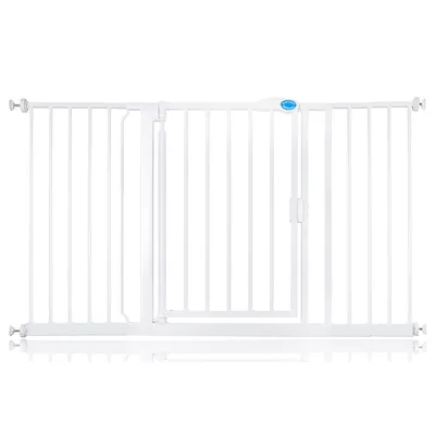 Barrière de sécurité bébé SAFETOTS Bettacare Auto Close, fixation par pression, installez-la sans percer les murs grâce au système sans vis - fermeture automatique et ouverture d’une seule main pour une utilisation simple et rapide. Disponible en trois tailles principales : Extra étroite 61–66,5 cm, Étroit 68,5–75 cm, Standard 75–82 cm (extensible jusqu’à 161,2 cm avec extensions). Hauteur de la barrière : 75,5 cm depuis le sol. Matériau robuste en métal, finitions lisses et arrondies, double verrouillage pour une sécurité renforcée, conçue pour résister aux chocs et à l’usure, conforme à la norme EN1930:2011. Livrée avec instructions d’installation claires et guide vidéo en ligne, disponible en blanc, noir mat ou gris ardoise, adaptée aux portes et escaliers des maisons modernes.Avantages du produit