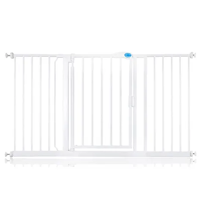 Barrière de sécurité bébé SAFETOTS Bettacare Auto Close, fixation par pression, installez-la sans percer les murs grâce au système sans vis - fermeture automatique et ouverture d’une seule main pour une utilisation simple et rapide. Disponible en trois tailles principales : Extra étroite 61–66,5 cm, Étroit 68,5–75 cm, Standard 75–82 cm (extensible jusqu’à 161,2 cm avec extensions). Hauteur de la barrière : 75,5 cm depuis le sol. Matériau robuste en métal, finitions lisses et arrondies, double verrouillage pour une sécurité renforcée, conçue pour résister aux chocs et à l’usure, conforme à la norme EN1930:2011. Livrée avec instructions d’installation claires et guide vidéo en ligne, disponible en blanc, noir mat ou gris ardoise, adaptée aux portes et escaliers des maisons modernes.Avantages du produit