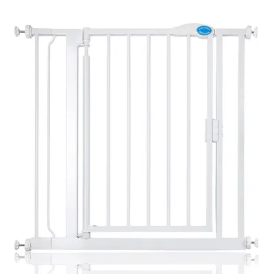Barrière de sécurité bébé SAFETOTS Bettacare Auto Close, fixation par pression, installez-la sans percer les murs grâce au système sans vis - fermeture automatique et ouverture d’une seule main pour une utilisation simple et rapide. Disponible en trois tailles principales : Extra étroite 61–66,5 cm, Étroit 68,5–75 cm, Standard 75–82 cm (extensible jusqu’à 161,2 cm avec extensions). Hauteur de la barrière : 75,5 cm depuis le sol. Matériau robuste en métal, finitions lisses et arrondies, double verrouillage pour une sécurité renforcée, conçue pour résister aux chocs et à l’usure, conforme à la norme EN1930:2011. Livrée avec instructions d’installation claires et guide vidéo en ligne, disponible en blanc, noir mat ou gris ardoise, adaptée aux portes et escaliers des maisons modernes.Avantages du produit