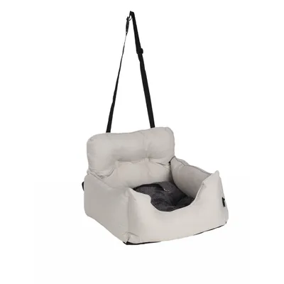 Siège auto pour chien Jakey conçu pour le transport sécurisé des animaux en voiture. Fabrication en polyester résistant à l'eau, avec rembourrage en fibre de polyester assurant maintien et confort pendant le trajet.