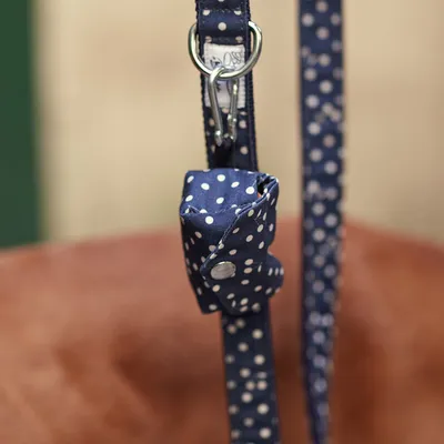 Pochettes pour sacs à crottes, imprimé bleu marine avec des pois et cerises.