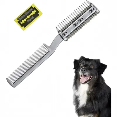Peigne coupe-poils 2-en-1 pour animaux, avec lame sécurisée et peigne démêlant.