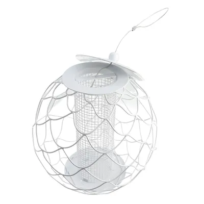 • La mangeoire dispose d'une sphère grillagée autour du distributeur permettant l'accès uniquement aux petits oiseaux.