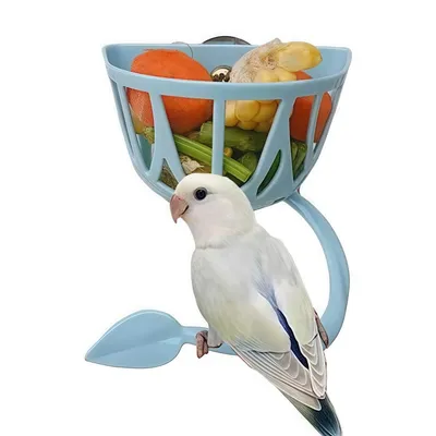 Ce distributeur de fruits et légumes est spécialement conçu pour les perroquets. Il offre un espace pratique où les oiseaux peuvent se poser et manger leurs aliments préférés.