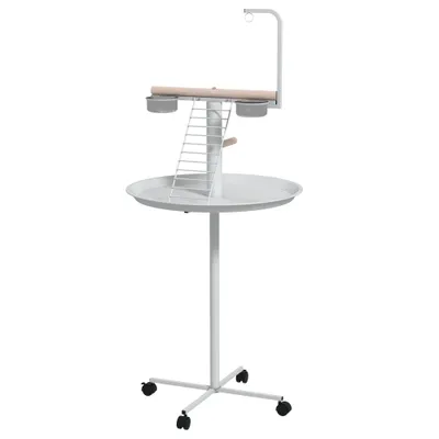 Perchoir sur pied pour perroquets, oiseaux - 4 roulettes - 2 mangeoires, 2 perchoirs, échelle, plateau acier